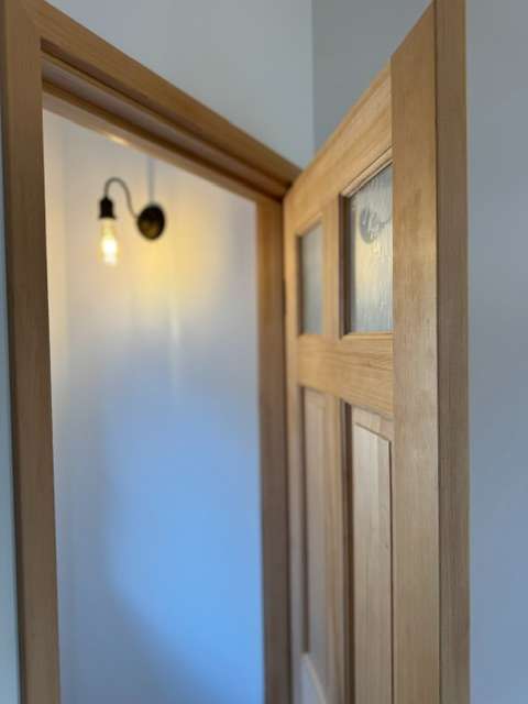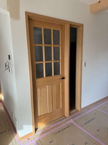 リビングドア・お手洗いのドアは明かりが見えるようガラス面があるタイプを選びました。